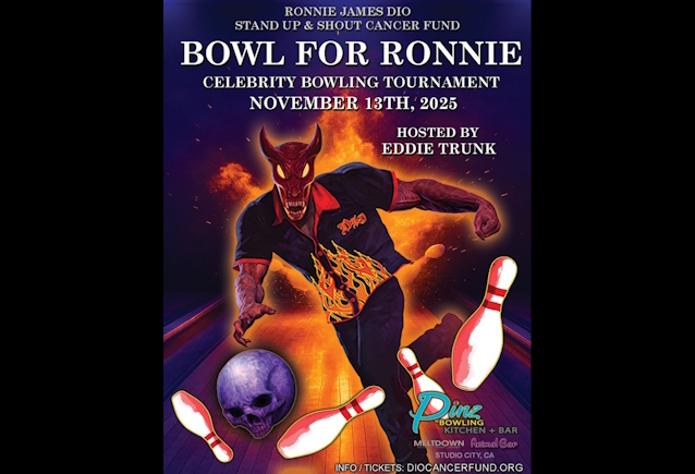 August 26, 2025The "Bowl For Ronnie" celebrity bowling party, the annual event benefiting the Ronnie James Dio Stand Up And Shout Cancer Fund, is set for Thursday, November 13, 2025. Taking place at PINZ Bowling Kitchen + Bar in Studio City, California, the event will once again be hosted by television and radio personality Eddie Trunk, who is heard on SiriusXM's 103 Faction Talk channel. "Bowl For Ronnie" will feature a celebrity bowling tournament and a raffle drawing for prizes and memorabilia. Last year's bowling event sold out well in advance and brought in more than $70,000 for the charity, whose mission is to raise awareness and much-needed funding for cancer research.