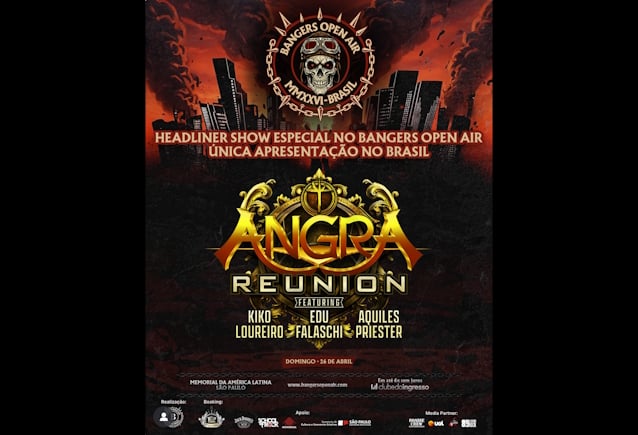 November 22, 2025Brazilian metallers ANGRA will stage a reunion of the band's "Rebirth" lineup at the 2026 edition of the Bangers Open Air festival on Sunday, April 26, 2026 at Memorial da América Latina in São Paulo. In addition to a performance by ANGRA's current lineup, fans will witness the long-awaited reunion of the lineup that recorded the "Rebirth" (2001) and "Temple Of Shadows" (2004) LPs, featuring the return of guitarist Kiko Loureiro, singer Eduardo "Edu" Falaschi and drummer Aquiles Priester.
