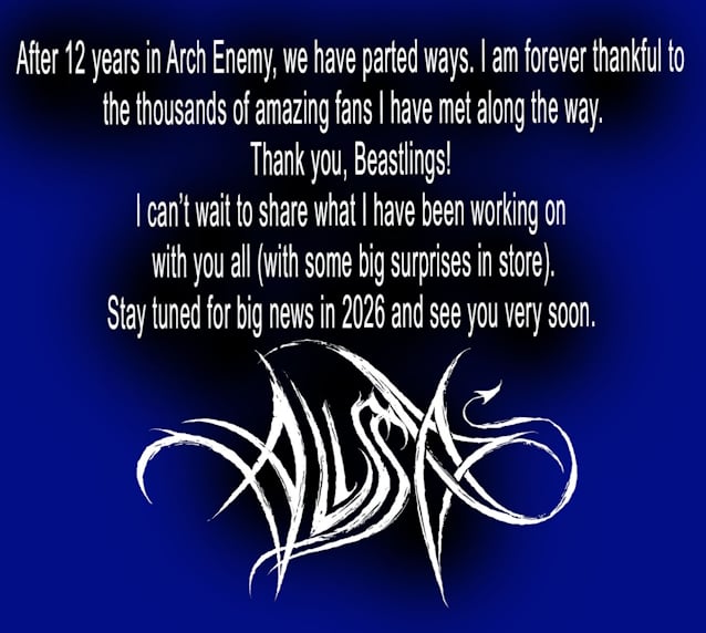Alissa added in a separate statement on her Facebook page: "After 12 years in ARCH ENEMY, we have parted ways. I am forever thankful to the thousands of amazing fans I have met along the way. Thank you, Beastlings!