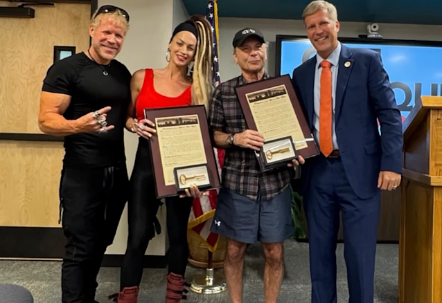 September 2, 2025IRON MAIDEN singer Bruce Dickinson and Tanya O'Callaghan, the bassist of Bruce's solo band, were presented with keys to the city by Albuquerque, New Mexico's mayor Tim Keller prior to Dickinson's August 26 solo concert at the Revel Entertainment Center venue in Albuquerque. A short video recap of the presentation can be seen below.