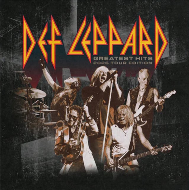 April 30, 2026To celebrate DEF LEPPARD's sold-out European arena tour this year, the band presents a newly mastered, limited-edition "Greatest Hits" set. The set is being made available on one LP and across two formats: standard black vinyl and special edition blood red marbled vinyl featuring exclusive 2026 tour edition artwork. The latter is exclusive to the tour. The album includes some of the band's most iconic tracks from their stellar career.