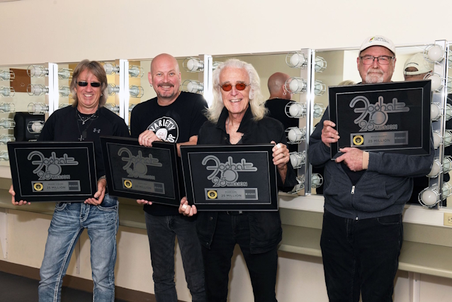 Hot on the heels of their critically acclaimed 50th-anniversary edition of "Fool For The City" (released September 12 by Rhino),the band behind the timeless anthem "Slow Ride" reached yet another new landmark in their illustrious career with an astonishing 25 million plays of the signature song on Apple Music. They were surprised on stage during their show October 3 at the Hanover Theatre in Worcester, Massachusetts, where they were presented with a stunning commemorative plaque marking the milestone.