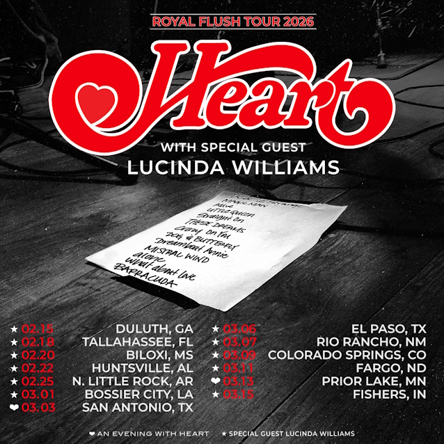 HEART's "Royal Flush" tour 2025–2026 will feature support from Lucinda Williams and more.