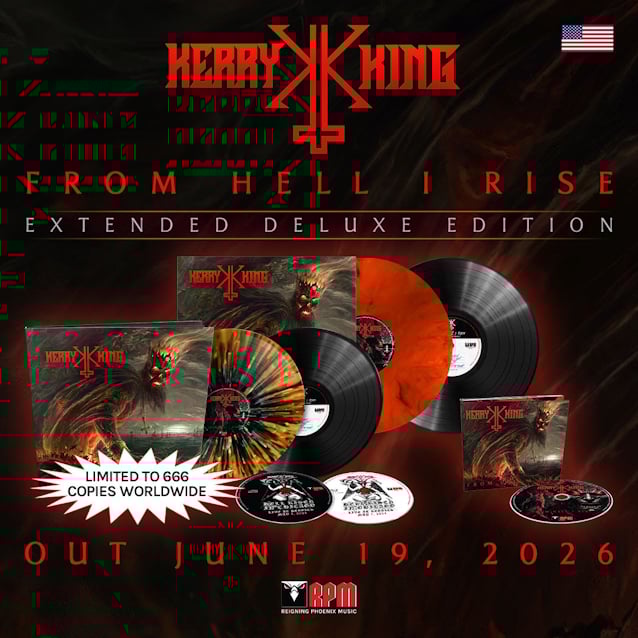 April 28, 2026SLAYER guitarist Kerry King will release an extended deluxe edition of his acclaimed debut solo album, "From Hell I Rise", on June 19 via Reigning Phoenix Music, expanding the record with five previously unheard demos and new visual elements, including cover artwork by James Bousema and a revamped layout with additional photos.