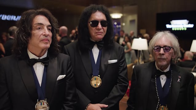 December 24, 2025The Kennedy Center channel on YouTube has uploaded a one-and-a-half-minute video in which the three living original members of KISS — guitarist/vocalist Paul Stanley, bassist/vocalist Gene Simmons and drummer Peter Criss — talk about being reunited at the Kennedy Center Honors on December 7 in Washington D.C., less than two months after the death of their longtime bandmate, original KISS guitarist Ace Frehley.