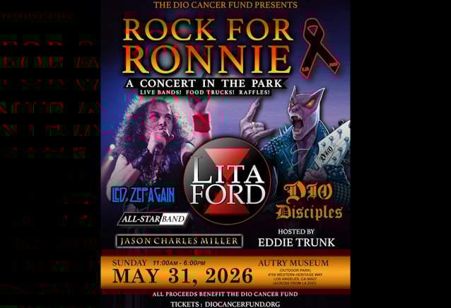 February 4, 2026This year's "Rock For Ronnie" concert in the park, benefiting the Ronnie James Dio Stand Up And Shout Cancer Fund, is set for Sunday afternoon, May 31, 2026, 11 a.m. to 6 p.m., at the outdoor space adjacent to the Autry Museum of the American West in Griffith Park (opposite the Los Angeles Zoo). An afternoon of live rock music, silent and live auctions, food trucks and fun geared to the entire family, "Rock For Ronnie" will be hosted by radio and television personality Eddie Trunk, who is heard on SiriusXM's 103 Faction Talk channel.