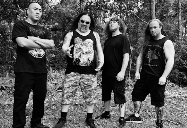 Lee went on to say that he didn't know anybody else at the time who had adopted quite the same style of death metal growling. But he clarified: "I took phonetic enunciation influences from Tom G. Warrior, only because I heard the HELLHAMMER demo and I really liked how he phonetically spoke, even though at the time I didn't realize it was 'cause he was from Switzerland and English wasn't his natural language. I just liked the way that he phonetically said things. So I took that, and there's a lot of his nuances, like his little 'ooh' and his 'hey', and I just took that and I expanded it. Instead of just going, 'Hey,' I went, 'Heeeey.' I kind of brought it out more. So there was that influence. And just the general influence of everything coming out in that late '80s time. Like I said, everything from VENOM to Lemmy from MOTÖRHEAD, just anything that was really raspy and raw I was attracted to. So I tried to kind of take all of those influences all together and put 'em all together."