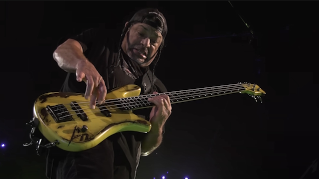 Trujillo also reflected on watching BLACK SABBATH soundcheck for "Back To The Beginning" on Thursday, July 3, two days before the big event. He said: "They were soundchecking, and Ozzy wasn't on stage yet. And even just hearing them warm up on their instruments, this is a whole another level. This is like [watching] Muhammad Ali shadow box or hit the speed bag — it's that intense. It's crazy, because SABBATH warming up to play, obviously, loud music in a stadium and they're just warming up, man — drum fills, some tribal beats Bill was doing, and you hear Geezer [Butler, SABBATH bassist] kind of noodling a bit. And then Tony — I even remember him playing some kind of sort of little bit of jazz, some jazz chords here and there, and then they went into, yeah, 'Into The Void'. And it was really slow and super heavy, but they just went into it. And everybody that was watching — there was a few of us — just started headbanging, and we were all smiling. And some people were crying, some people were crying. It was so beautiful, and it was a powerful moment that anybody that witnessed it, that was something that they'll probably remember for the rest of their lives. But it was a special day. And to see the command that [those] songs and just the feel of that music has on all of us is really something special."