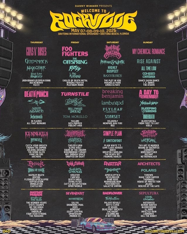 "With the full lineup now revealed, fans can start getting loud for the 15th anniversary of Welcome To Rockville at Daytona International Speedway," said Frank Kelleher, president of Daytona International Speedway. "We're bringing the heat in 2026 — GUNS N' ROSES, FOO FIGHTERS, FIVE FINGER DEATH PUNCH, GODSMACK, BREAKING BENJAMIN and over 160 bands ready to blow the doors off The World Center of Racing. Daytona is built for moments like this, and Rockville will deliver them all weekend long."