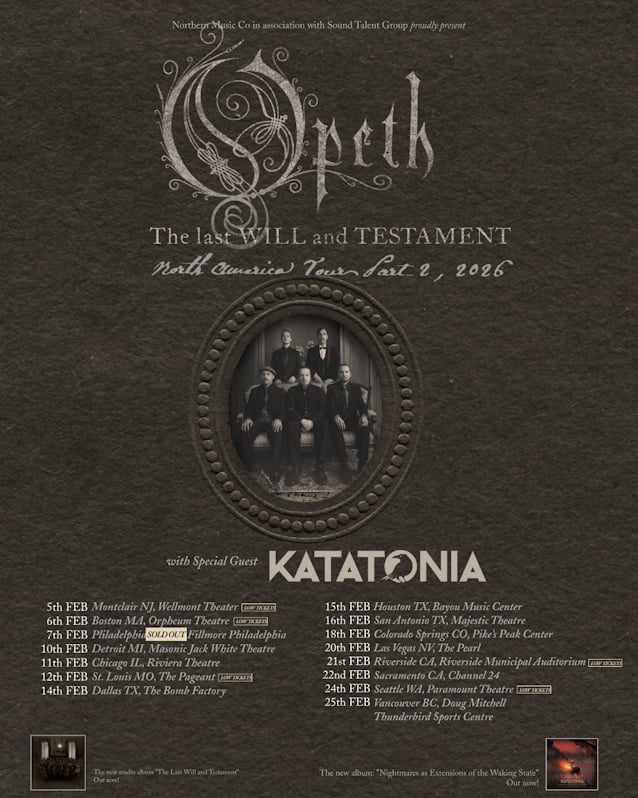 The release arrives ahead of OPETH's upcoming U.S. tour, which kicks off in two weeks and will see the band bringing the music of "The Last Will And Testament" to stages across the country alongside fan favorites from their storied catalog.