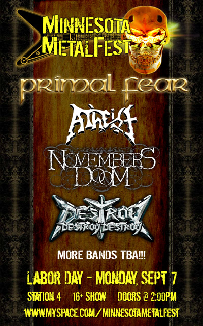 PRIMAL FEAR, ATHEIST, NOVEMBERS DOOM Confirmed For MINNESOTA METALFEST