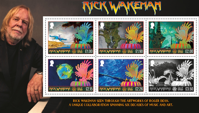 Wakeman commented: "I am honored to have my career featured on these stamps having spent many years as a resident of the Isle Of Man. Roger Dean's artwork has always felt like a natural extension of the music I've created, and to see our worlds brought together on stamps is both surreal and wonderful."