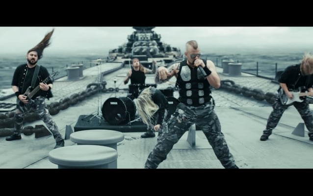 As part of the alliance with World Of Warships and Wargaming, SABATON filmed the accompanying music video in Belgrade, Serbia last October. Quite fittingly, it depicts SABATON aboard the titular ship during its last stand, descending into the unforgiving ocean as the band hangs on for dear life. Waves consume the deck, but each member keeps playing his instrument even as the chaos swallows the guys up one by one.