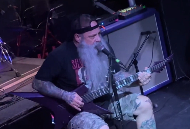 Earlier this week, CROWBAR frontman Kirk Windstein revealed that he would be "sitting down" during the early part of the trek, which will wrap up on August 31 in Pensacola, Florida, due to what he described as "either a bad sciatica flare-up or potentially a ruptured disc" in his "lower spine". He said in part: "I don't call in sick. I'm there to give y'all a hundred percent and please the fans the best I can. So I'm probably gonna have to start this tour …. sitting down, but we'll be singing and playing top-notch the best I can do. I can't walk right now, and that's the truth. I've got a cane, I've got a walker, and I've never had this kind of pain in my life. I'm 60 years old, and I've never had this pain in my life. But anyway, I think positive; I don't think negative. So it's gonna be great, and we're gonna kick ass every night. So thank y'all so much."
