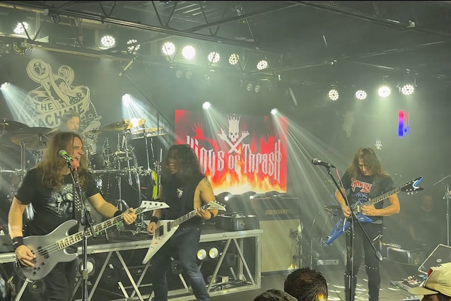 October 26, 2025Fan-filmed video of KINGS OF THRASH performing a cover of the KISS classic "Cold Gin" in honor of Ace Frehley this past Friday, October 24 at the Machine Shop in Flint, Michigan can be seen below (courtesy of the Joe E Bravo channel on YouTube). For the "Cold Gin" rendition, KINGS OF THRASH members David Ellefson (bass, ex-MEGADETH),Jeff Young (guitar, ex-MEGADETH),Chaz Leon (vocals, guitar) and Fred Aching (drums, DEAD GROOVE/ex-BULLETBOYS) were joined by Gabriel Connor of RED DEVIL VORTEX on vocals.