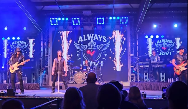Regarding what separates ALWAYS JOVI from the other BON JOVI tribute acts, Steve said: "I looked at all the BON JOVI bands around the world and around the country. Some of my friends are in SLIPPERY WHEN WET —great guys. They do more of the lookalike thing, if you will, the wigs — I don't know if there are wigs involved — but the costumes. That's not what my thing is. My thing is very much rooted in the GET THE LED OUT. There's a guy, Marc Martel, the ONE VISION OF QUEEN guy. He does a QUEEN show where the music is the star of the show. It's not about costumes. Yeah, we dress up in rock stuff. We put on a great show. I have a whole video wall and this incredible content that me and my partner Nick — he's in the band THAT ARENA ROCK SHOW — he's my partner and co-manager in this band, and he's been such an incredible help. But we've put together this incredible production."